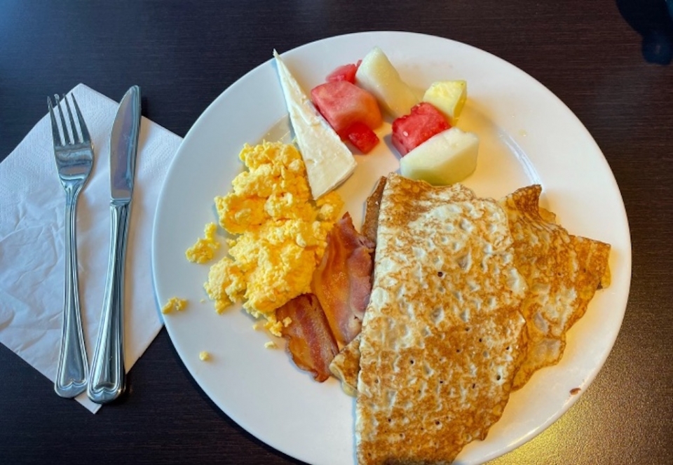 My day started off around 7:00 when I headed down to breakfast. At the Scandic hotel in Hafjell, we ate in a buffet style restaurant with many other athletes from different countries competing at the WJC. For this morning’s breakfast, I chose crepes, eggs, cheese, fruit, and some delicious Norwegian jams.