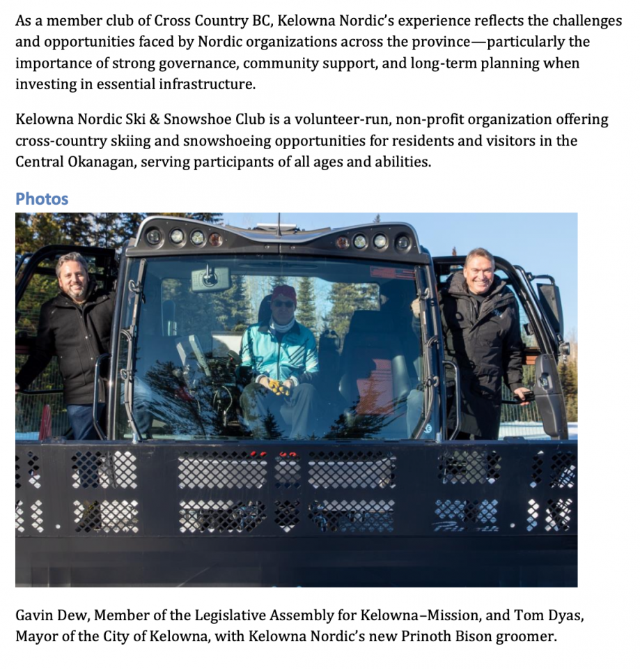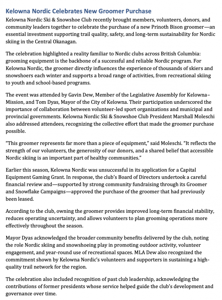 Kelowna Nordic Celebrates New Groomer Purchase »