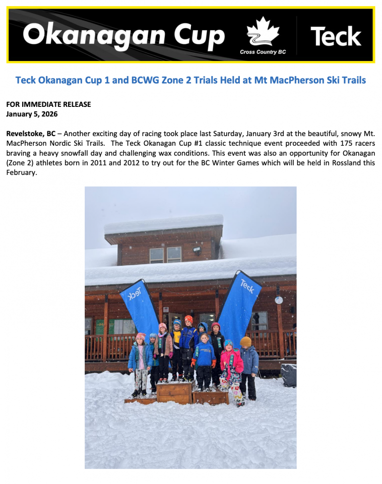 Press Release: Teck Okanagan Cup #1 (Revelstoke, BC) »